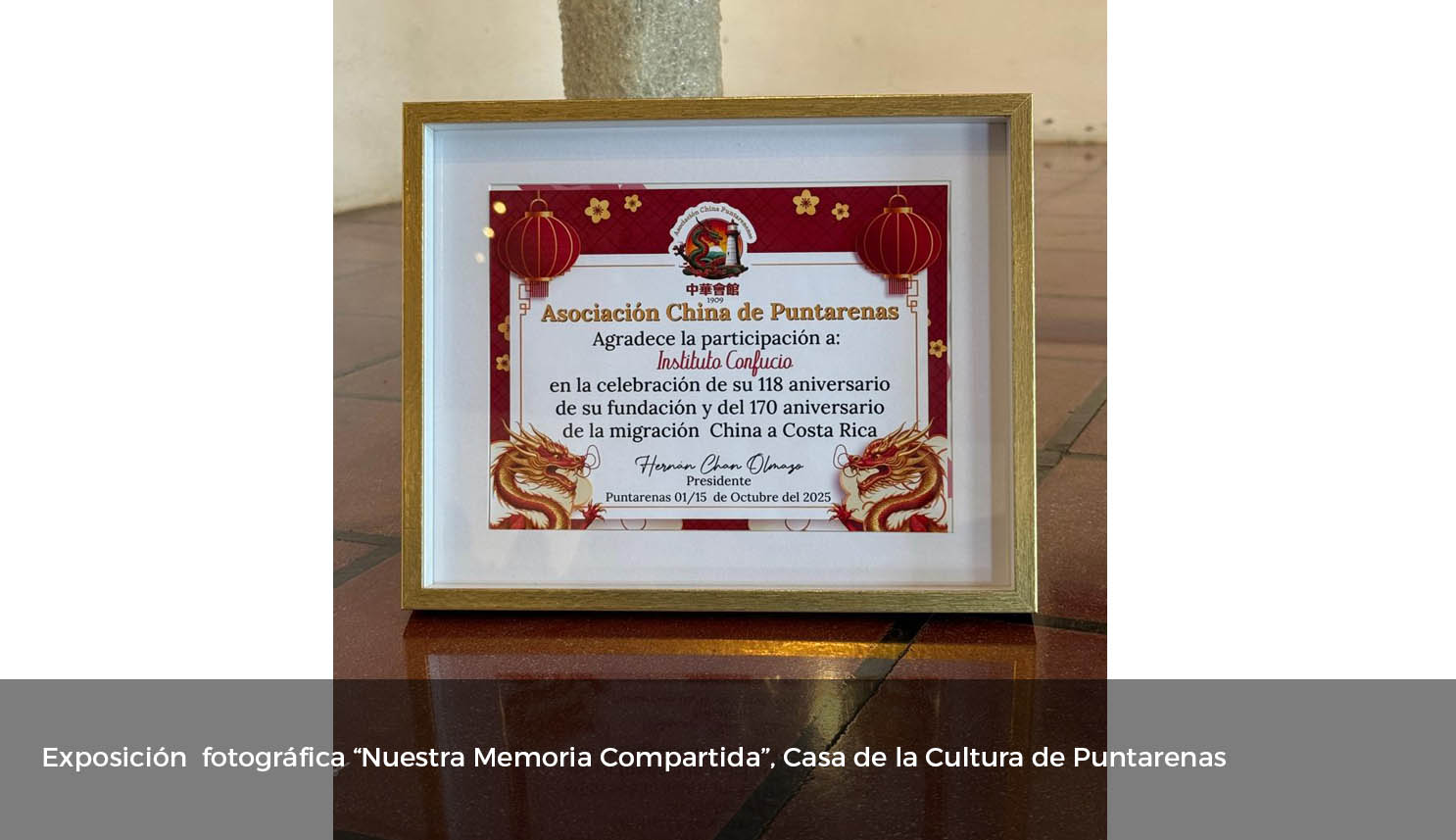 San José, Costa Rica 30 de octubre. En un emotivo acto celebrado en la Casa de la Cultura de Puntarenas, se inauguró la exposición fotográfica “Nuestra Memoria Compartida 170.º Aniversario de la Llegada de los Chinos a Costa Rica”, organizada por el Instituto Confucio de la Universidad de Costa Rica, la Embajada de la República Popular China y el Archivo Nacional de Costa Rica con la colaboración especial de la Asociación China Puntarenense y la Casa de la Cultura de Puntarenas "Elsie Canessa de Odio".
